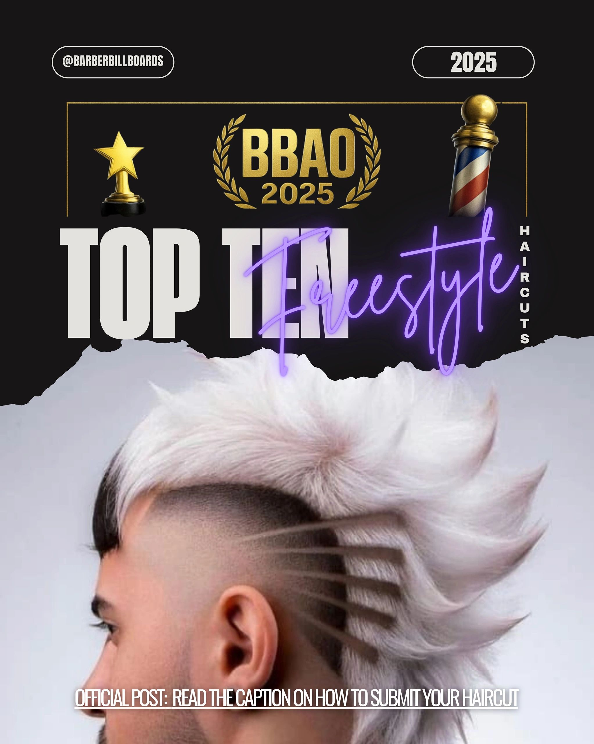 TAG @barberbillboards and use hashtags #toptenfreestylehaircuts25 : #barberbillboardstop10haircut #bbaotop10